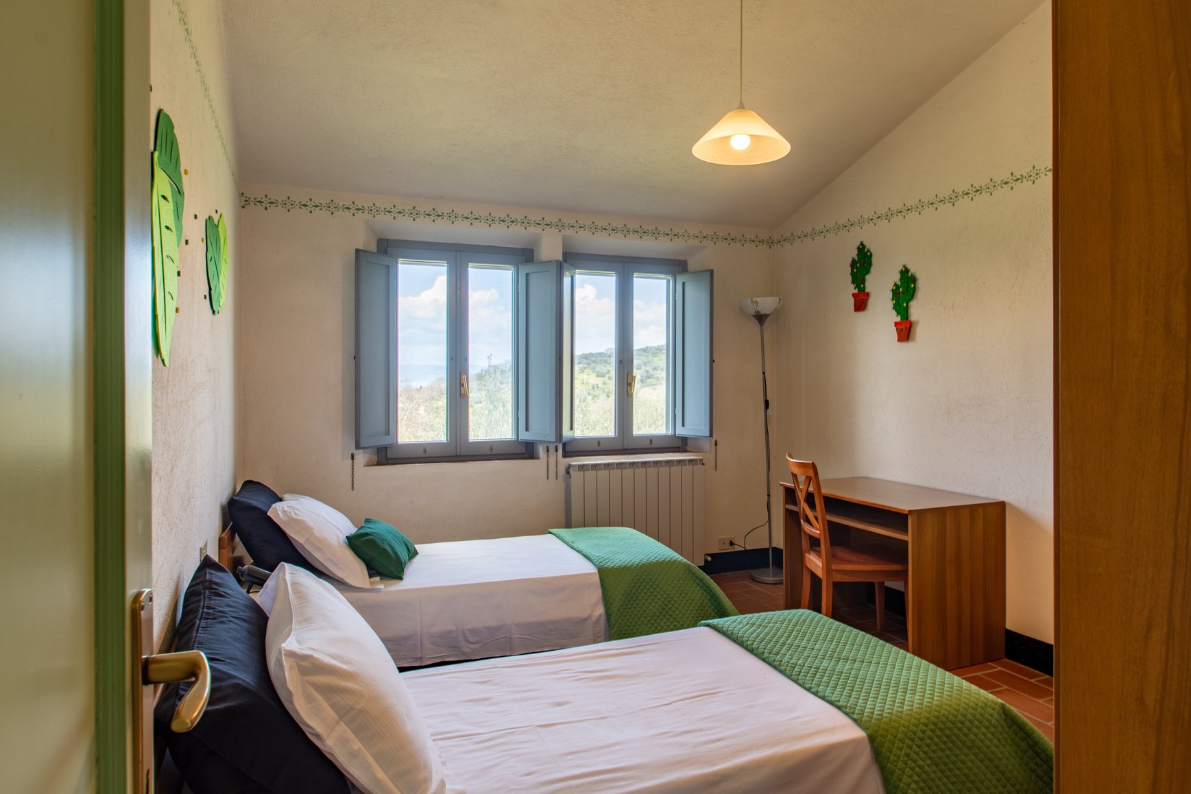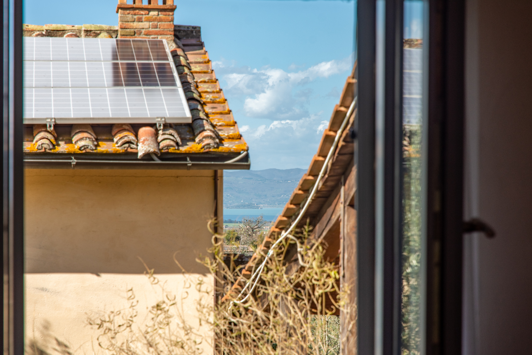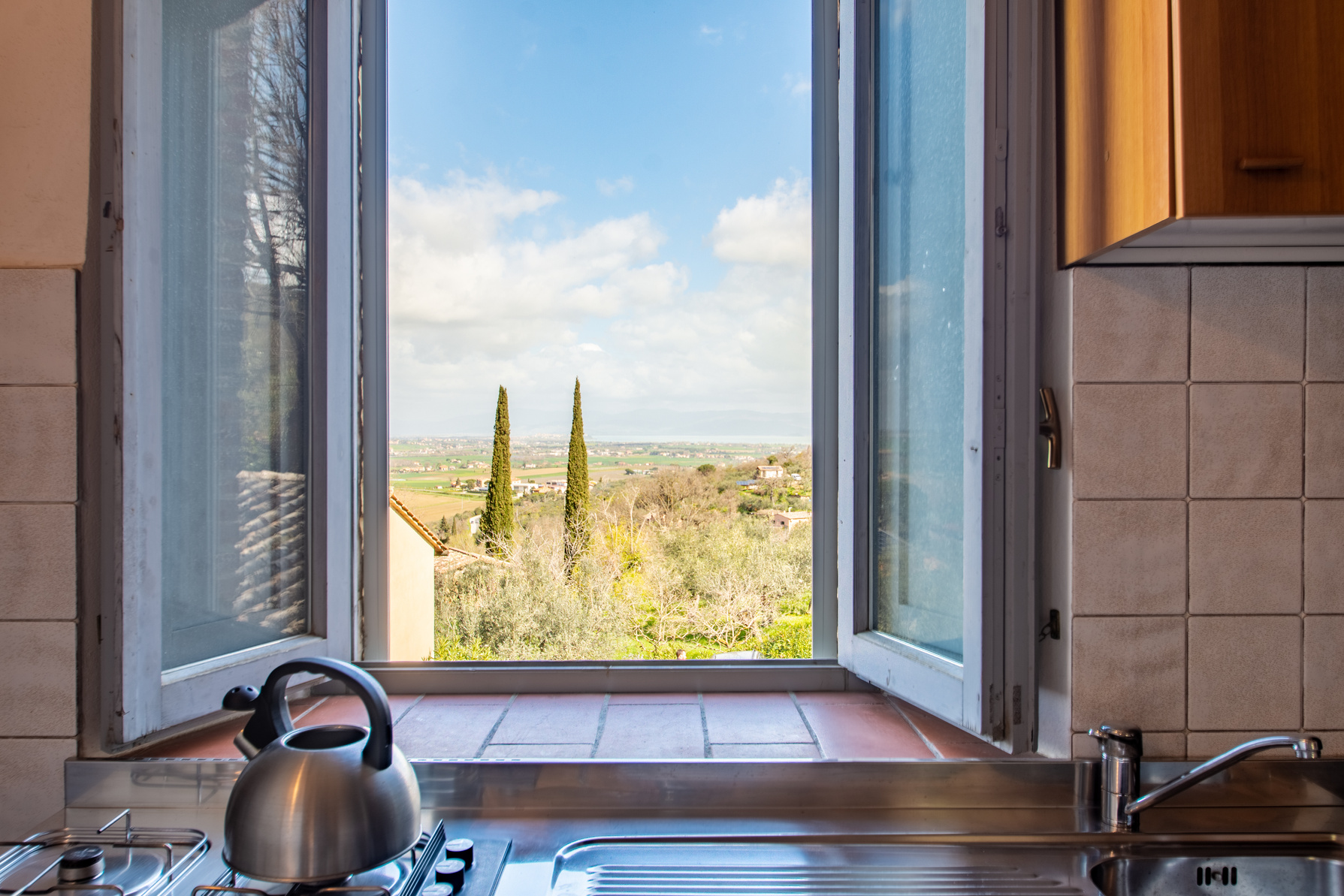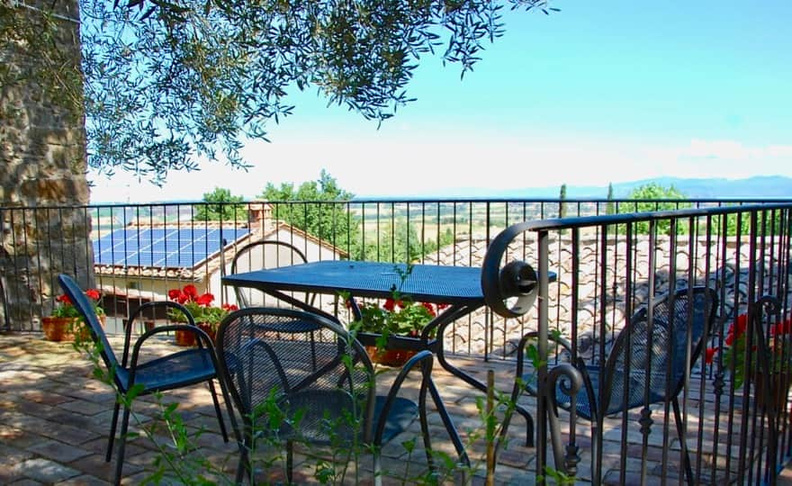 The apartments are immersed in nature on a one hectare estate of olive groves and fruit trees. There are beautiful views over Paciano and the countryside around the ancient hill towns of Città della Pieve and Chiusi and the more distant Cortona and Montepulciano, as well as the Lake and its islands.