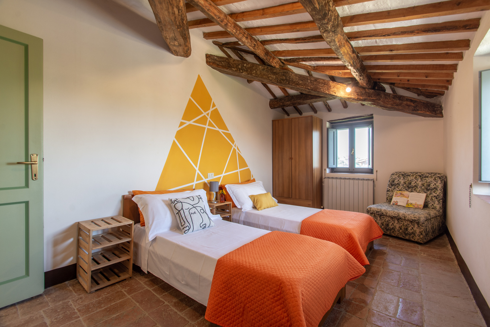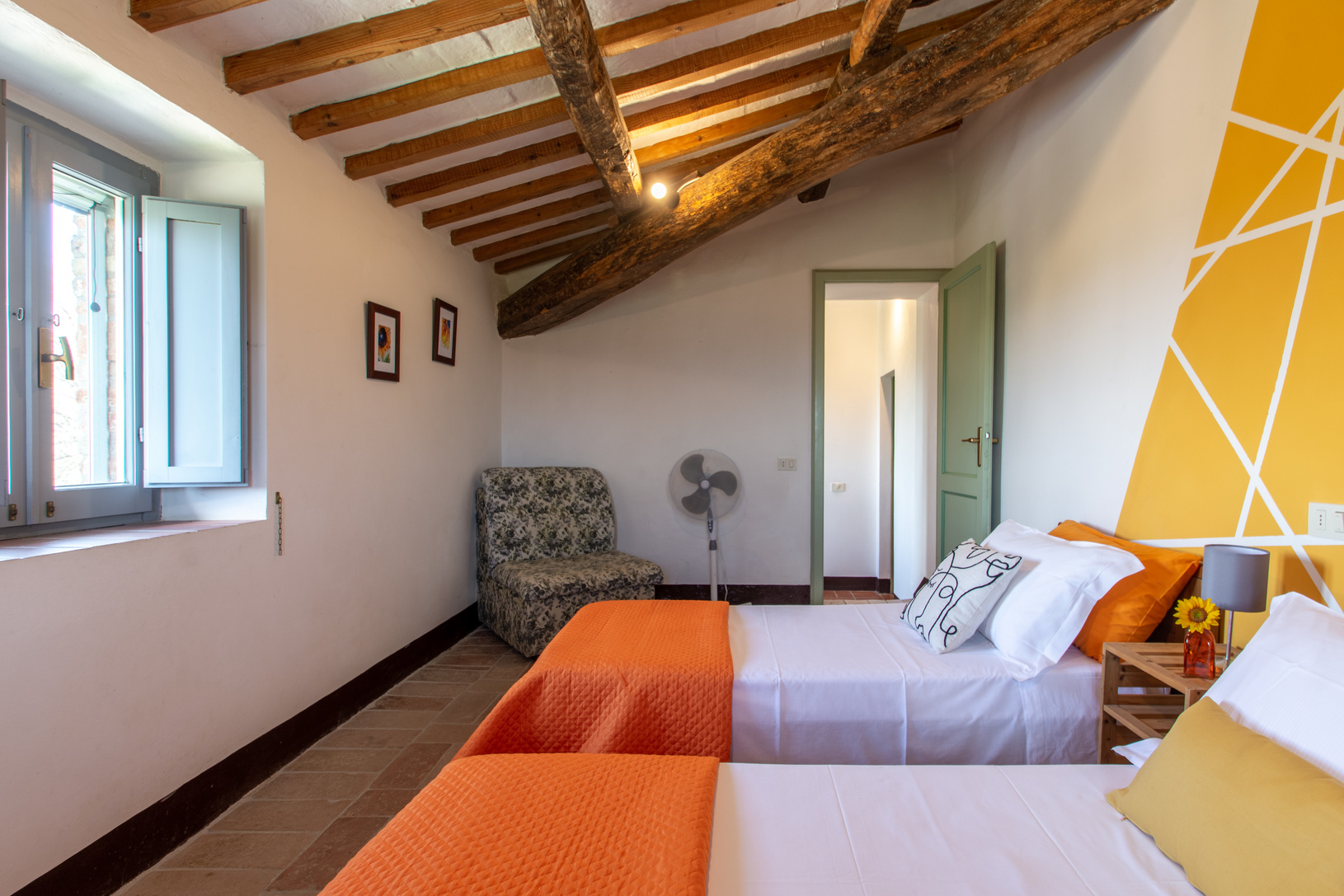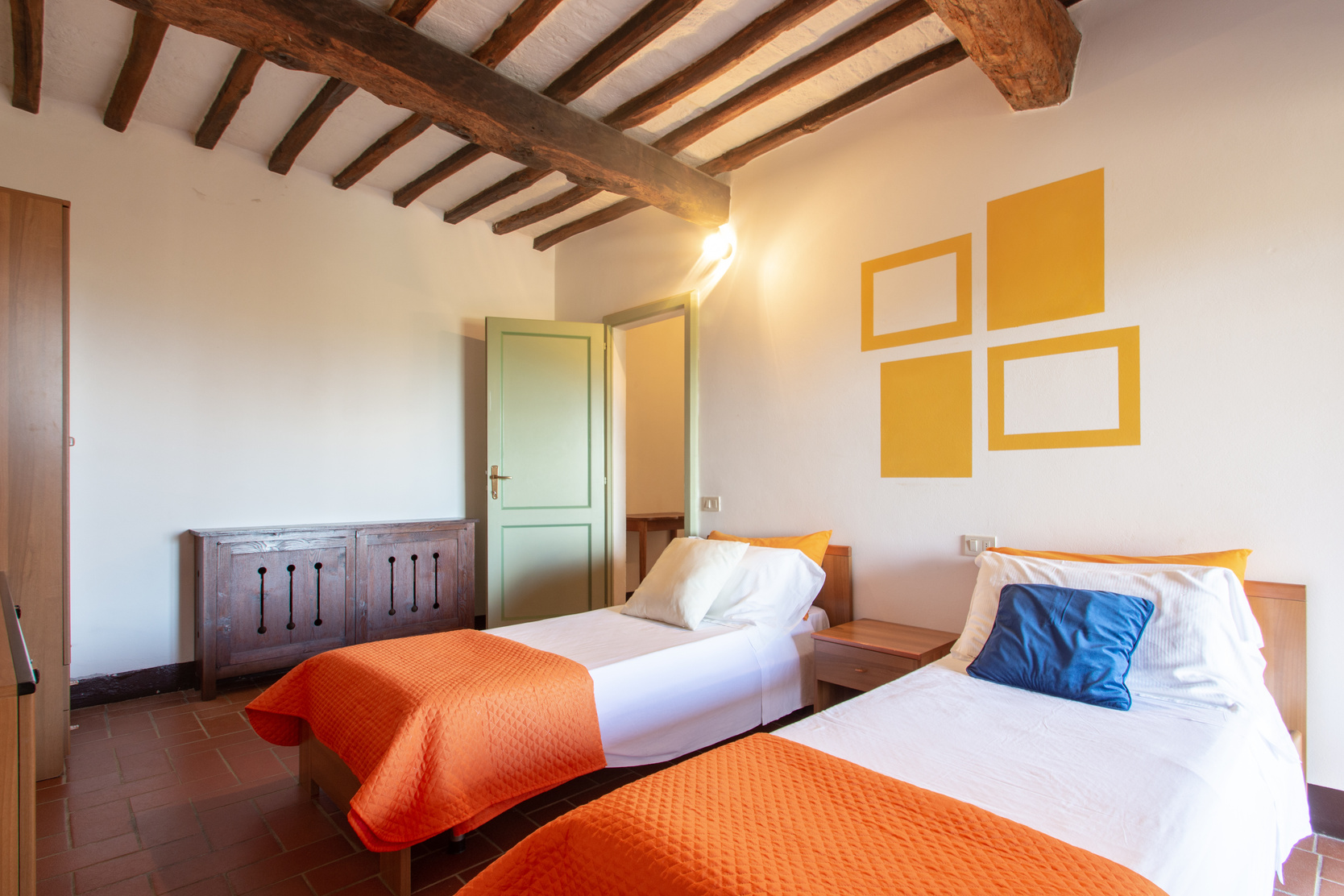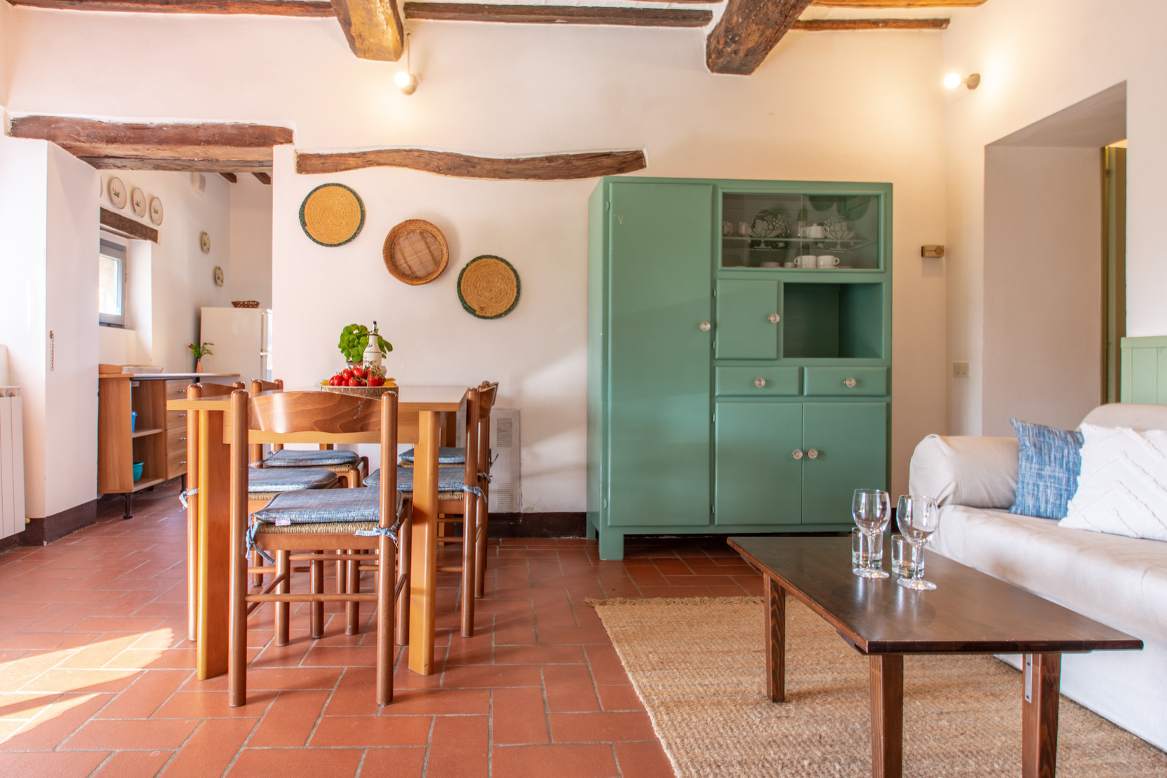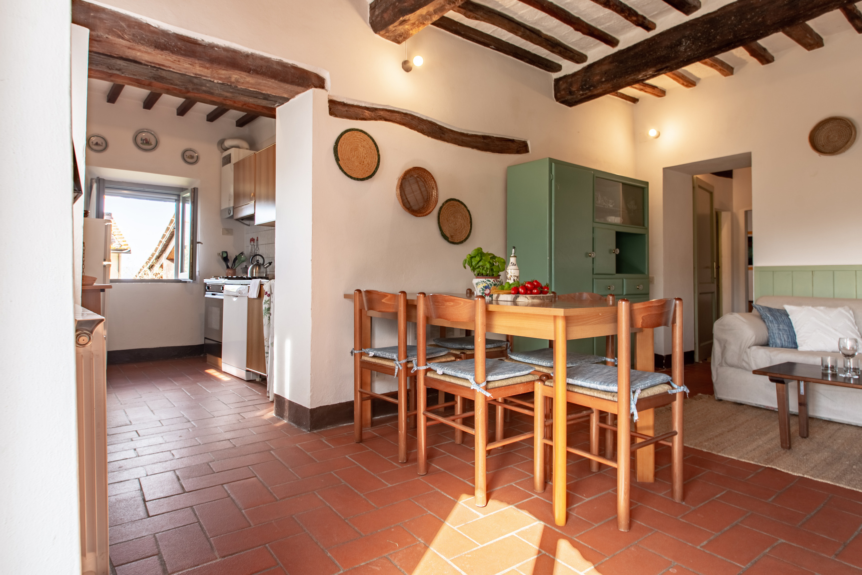 The four apartments, each of which has a private entrance, are: Cilegio (up to 8 guests), Vite (up to 4 guests), Olivo (up to 4 guests) and Noce (up to 6 guests). Each apartment has WiFi, a fully equipped kitchen (including fridge, oven and dishwasher) and a washing machine, as well as a private outdoor eating area with table, chairs and an umbrella for shade.